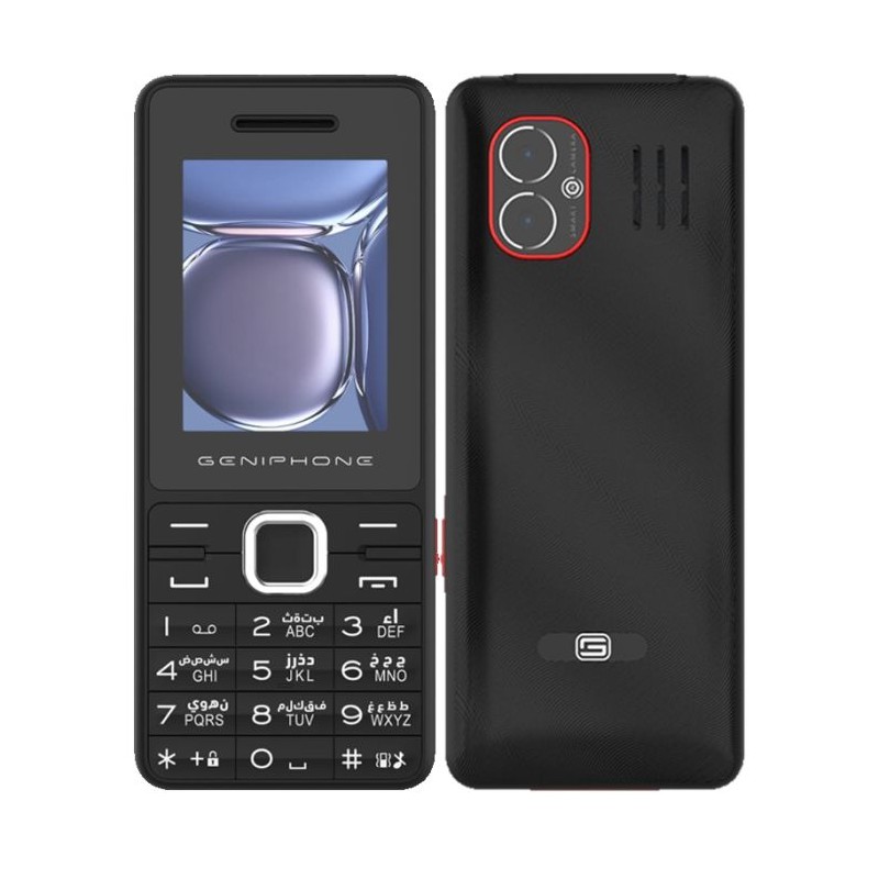 Téléphone Portable GENIPHONE A33 - Écran: 2.4" - Caméra: 0.3MP - Mémoire: 32Mo - Stockage: 32Mo - Capacité Batterie: 1800mAh - Radio FM sans fil - Double SIM - Dual Torche - Bouton de torche latérale - Lecteur carte mémoire